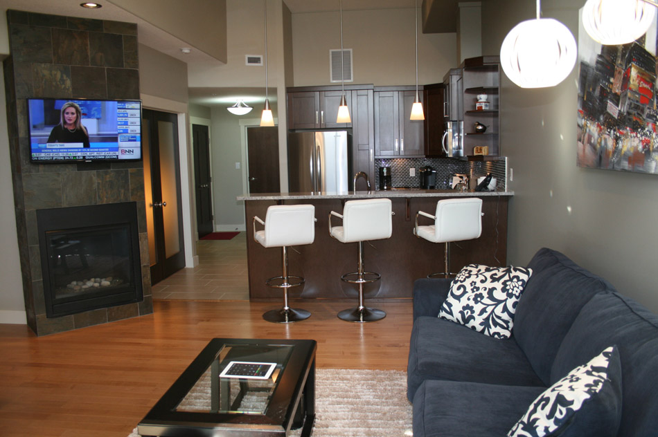 This 1066 sq. ft. suite is decorated in a modern “urban casual” style with hardwood floors throughout. This unit offers a live/work space that is filled with security, comfort, and authenticity; and the gas fireplace in the living room adds to the warmth of the unit. This suite offers 12' Ceilings with southern exposure and is conveniently located across the street from the University of Saskatchewan and close to Restaurants, Pubs, and Theatres. Close walking proximity to RUH Hospital & the U of S Campus. This unit comes with Granite Countertops, Under Cabinet Lighting, Maple Cabinets, Stainless Steel Appliances 1 Underground secure parking included! All units come with InSuite Laundry, Complete Kitchens with Meal settings for 8 persons. Kitchen offer Granite Counter Tops, Stainless Steel Appliances and a well Tooled Kitchen. Both Bedroom’s offer Queen Bed’s and Bedroom Furnishings and peripheral’s with all linens supplied. Air conditioned, mailbox, security entrance, cable, high speed Internet with Secure WIFI Deck Furnishings and BBQ also included! Weekly and Monthly rental Rates available. Long Term Lease Rates Available!